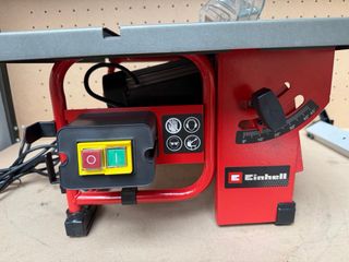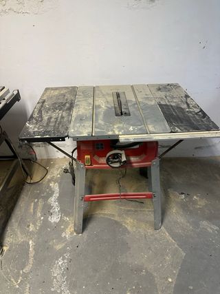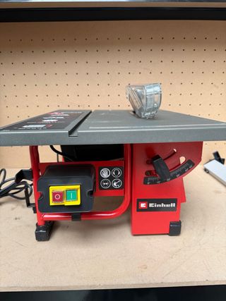 Sierra de mesa Einhell en buen estado, lista para usar. - Mesa de trabajo amplia. - Protector de hoja. - Guía de corte ajustable.