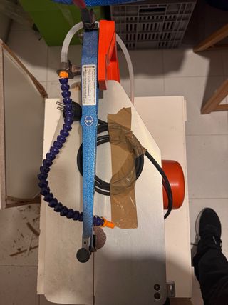 Sierra de mesa de corte con agua de la marca Alba. Ideal para trabajos de construcción y reformas. - Disco de corte incluido. - Sistema de refrigeración por agua.