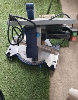 Sierra de mesa con motor de 800W. - Incluye guía de corte y protector de hoja. Corte a inglete también - Base negra con detalles metálicos. Solo utilizado para revestir pared de madera de 3m2,,prácticamente nueva utilizada un fin de semana,,,regalo programador de riego nuevo ,,esta en mis anuncios