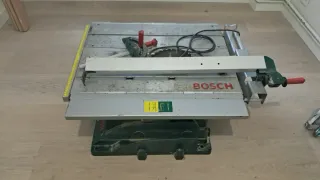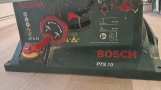 Sierra de mesa Bosch PTS 10 en buen estado de funcionamiento. Una máquina potente (1400W) y muy versátil para cortes precisos en madera. Capacidad de corte: Hasta 75 mm de altura. Mesa extensible: Soporte lateral y posterior para piezas grandes. Carro deslizante integrado: Para cortes a inglete precisos. La máquina tiene las marcas normales de uso en un taller pero funciona perfectamente. Se puede ver y probar sin compromiso. (Debido al peso, solo entrega en mano o envío gestionado por el comprador).