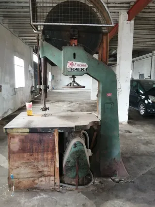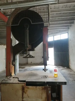 Sierra de cinta de gran tamaño, ideal para trabajos industriales o de carpintería. - Estructura robusta de metal. - Disco de corte grande. - Mesa de trabajo amplia.