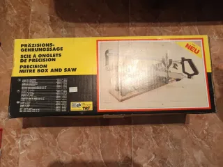 Ingletadora con guías para cortes precisos de 90°,45° y diagonal. - Lleva topes para que no se mueva la pieza o se puede atornillar a la mesa. - Máximo 10cm. - Hoja sierra metal templado, corte fino, de 30 cm. - Sierra intercambiable.