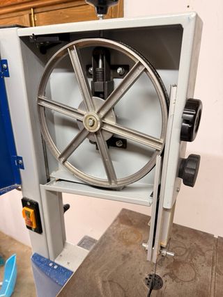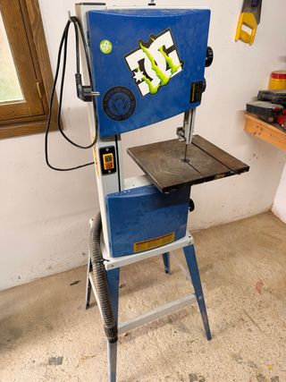 Sierra de cinta para trabajos de carpintería o bricolaje Ideal para Makers Mesa de hierro fundido inclinable Incluye palograma Incluye una cinta Patas desmontables para poder dejarla fija en mesa - poco uso - Incluye manguera de aspiración. - cintas de 182cm NO HAGO ENVIO,SOLO RECOGIDA EN MANO EN BETERA/VALENCIA
