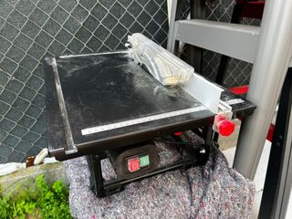 Sierra de mesa con patas plegables. Pesada para hacer envío, pero se puede mirar.