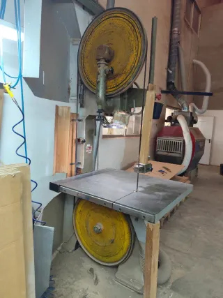 Sierra de carpintero robusta y fiable, ideal para trabajos de madera. - Estructura metálica resistente. - Mesa de trabajo amplia. - Diseño vertical. Transporte a cargo del comprador