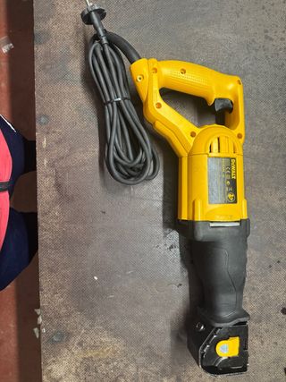 Vendo sierra sable DEWALT profesional, potente y fiable. Ha sido usada, presenta desgaste estético normal, pero funciona perfectamente. Incluye 5 hojas BOSCH Progressor para madera y metal, prácticamente nuevas (ver fotos). Ideal para: Demoliciones Corte de madera, metal y tubos Obras, reformas o bricolaje exigente Características: Marca: DEWALT Tipo: Sierra sable eléctrica con cable Empuñadura ergonómica Cambio rápido de hoja Se entrega tal como se ve en las fotos Estado: ✔ Funciona correctamente ✔ Uso profesional ✔ Lista para trabajar
