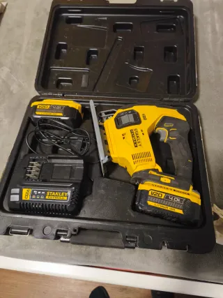 Sierra de calar inalámbrica Stanley Fatmax. - Incluye dos baterías de 20V 4.0Ah. - Cargador de batería. - Maletín de transporte. -Tiene muy poco uso