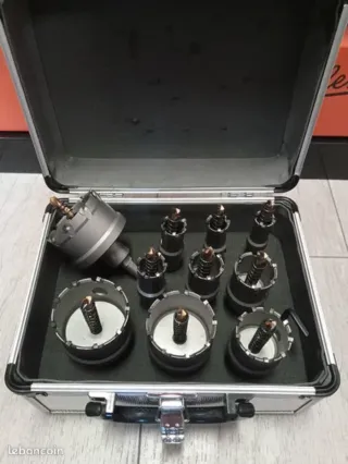 juego de 6 sierras de corona KraftMuller de carburo TCT para metal, de 22-65 mm. Sierras de corona/brocas de alto rendimiento para taladrar metales como acero, acero inoxidable, hierro, fundición, aluminio, latón, aleaciones, piezas fundidas, placas y chapa metálica en general. Perforación rápida y precisa con óptima evacuación de virutas. Sierras multidientes con puntas de carburo de tungsteno TCT de alta calidad, brocas helicoidales de centrado/piloto de acero HSS con revestimiento de titanio que garantizan alta dureza, resistencia a la corrosión y durabilidad. Diseño de 3 hojas: una exterior, una central y una interior, lo que la