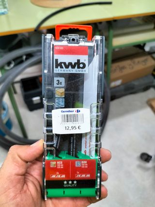 Vendo juego de sierras para madera y metal KWB. Están nuevas, sin usar. - Incluye 2 hojas de sierra HCS para madera. - Incluye 1 hoja de sierra BIM para metal. - El juego viene en su caja original, ver foto. Lo compré por error y no valen para mi caladora. El ticket para devolverlas está en paradero desconocido.
