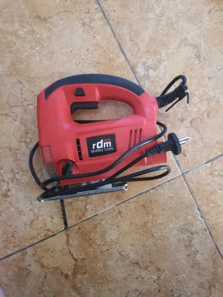 Sierra de calar eléctrica en color rojo, ideal para trabajos de bricolaje y carpintería. - Mango ergonómico para un mejor agarre. - Base metálica. - Cable de alimentación incluido. Poco uso como nuevo