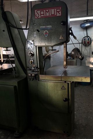 Sierra de arco marca SAMUR, ideal para cortar metales. Es antigua pero se encuentra en buen estado. Trabajando en la actualidad. Disponemos de 2 unidades Descuento si se llevan 2 (1000 cada una) Ponerse en contacto si sólo les interesa una o negociar precio en caso de querer las dos. Para cualquier pregunta o interés de compra. Telf. 636593418 - Modelo S-400. - Diseñada para corte de hierro y otros metales. - Panel de control con interruptores y selector. - Mesa de corte robusta.