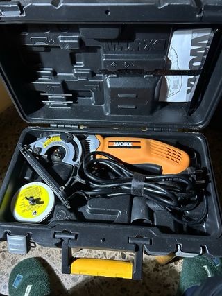 Herramienta eléctrica para cortes precisos. - Base metálica. - Sierra de corte. - Cable de alimentación. No negociable
