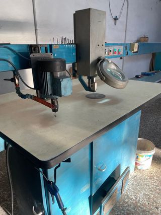 Sierra de calar automática con taladro para troqueles. Ideal para trabajos de carpintería, bricolaje, ebanistas, marquetería.. - Amplia área de trabajo para tableros grandes. - Aspirador Nilfisk para el serrín. - Soplado para mover el material con facilidad. - Lupa con luz. - Motor y variador electrónico nuevos.