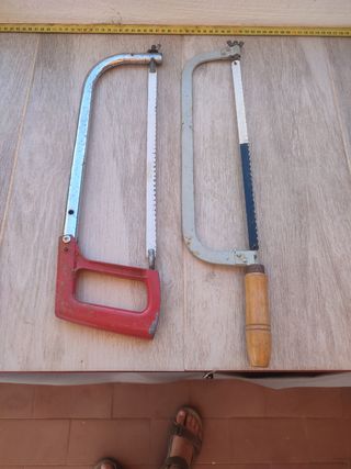 Se venden dos sierras de carpintero antiguas. Ideales para coleccionistas o amantes de herramientas clásicas. - Son de madera y metal. - Se encuentran en buen estado de conservación, considerando su antigüedad. - Perfectas para un proyecto de restauración o decoración.