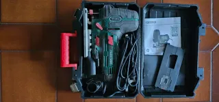 Sierra de calar Parkside en su maletín original. - Incluye sierra de calar. - Maletín de transporte. - Manual de instrucciones. - Accesorios.