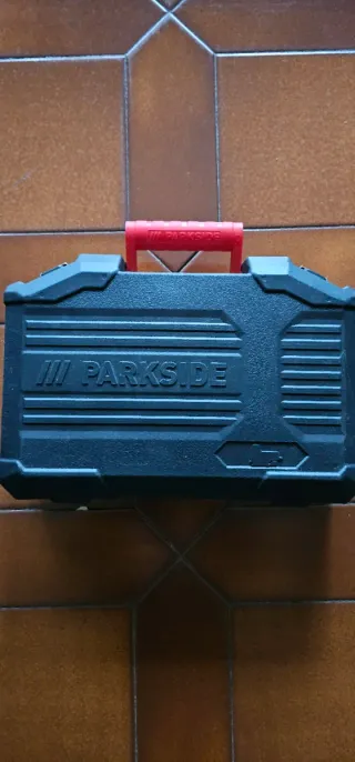 Caja de almacenamiento para caladora de la marca Parkside. - Color negro y rojo. - Diseño robusto.