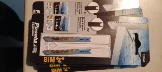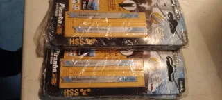 Lote compuesto de - 15 Packs X2 sierras de calar B&D X25042 - 5 Packs X2 sierras de calar B&D X25002 - 1 Pack de 2 hojas B&D X26082 - 2 Brocas B&D super lok X53023 - Broca B&D 2mm con base super lok de 8mm X62506 - Broca Dexter metal 10mm Todo en su blíster original y precintado
