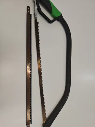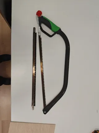 Herramienta manual para trabajos en madera. - Incluye serrucho con mango ergonómico. - Se incluyen dos hojas de sierra de repuesto. - Hojas con dientes finos para cortes precisos. Tiene una hoja de repuesto. Casi no se ha usado