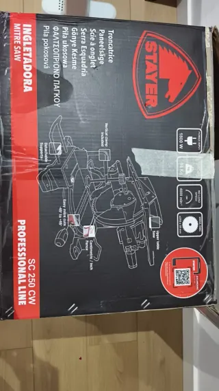 Sierra ingletadora Stayer SC 250 CW de la línea Professional. - Diseñada para profesionales. - Incluye disco de widia para madera de 255 x 30 mm. - Capacidad de corte: 150 x 70 mm (90°), 110 x 70 mm (45°/90°), 150 x 40 mm (90°/45°), 110 x 40 mm (45°/45°). - Mesa superior: 0-38 mm.