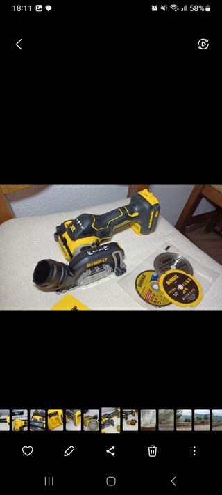 Mini sierra ingletadora a batería Dewalt DCS438N-XJ 76 mm y 18 V XR solo cuerpo,sin cargador/batería con 3 discos de corte.