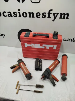 Se vende lote de pistolas de silicona Hilti MD2000 junto con sus accesorios. - Incluye dos pistolas Hilti MD2000. - Incluye dos cepillos de limpieza. - Incluye un accesorio para empujar. - Incluye un maletín Hilti rojo.