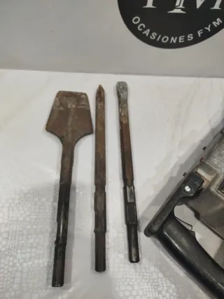 Se vende martillo percutor Hitachi en buen estado, ideal para trabajos de demolición y construcción. Incluye tres cinceles. - Incluye cincel plano y dos cinceles puntiagudos. - Mango ergonómico para mayor comodidad. - Cable de alimentación incluido.