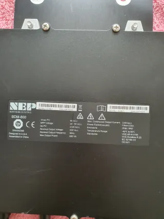 Microinversor solar BDM-800, diseñado para optimizar la producción de energía solar. Incluye conectividad WiFi para monitoreo. - Modelo: BDM-800 - Conectividad: WiFi