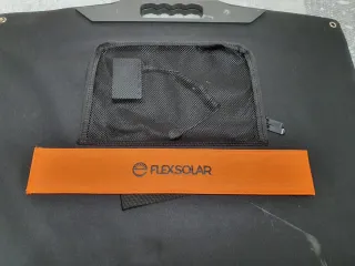 Panel solar flexible de la marca FLEX SOLAR. Es un panel portátil y ligero, ideal para cargar dispositivos en exteriores. - Diseño plegable para facilitar el transporte. - Acabado en color negro.