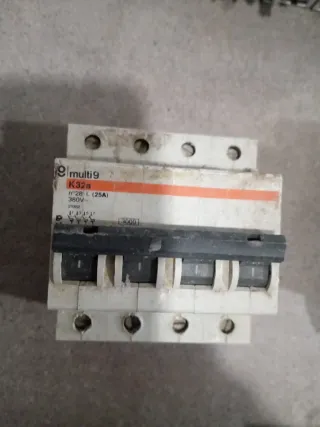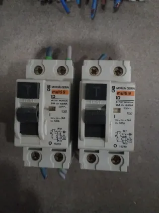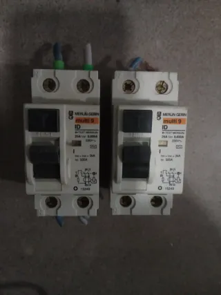 2 Interruptor automático Merlin Gerin multi 9 ID. - Modelo: ID - Marca: Merlin Gerin - Corriente nominal: 25A - Sensibilidad: 0,030A - Tensión nominal: 230V~ - Capacidad de cortocircuito: 3kA - Corriente de cortocircuito: 500A