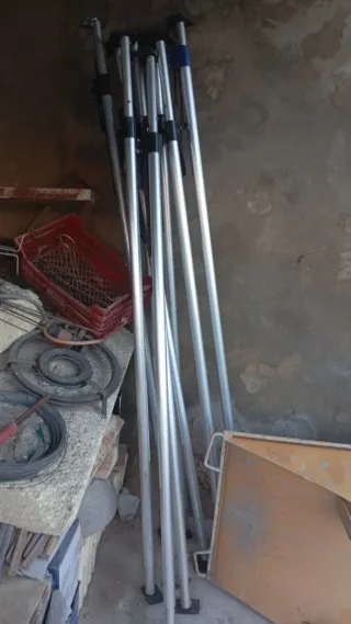 Se venden puntales metálicos de construcción, varios colores y un arnés de seguridad. - Puntales metálicos de diferentes colores. - Arnés de seguridad con cuerdas y mosquetones.