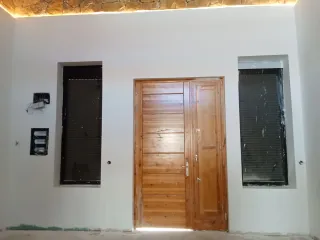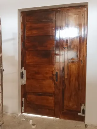Reparación y sustitución de Puertas y portones, ventanas de madera con acabado barnizado.