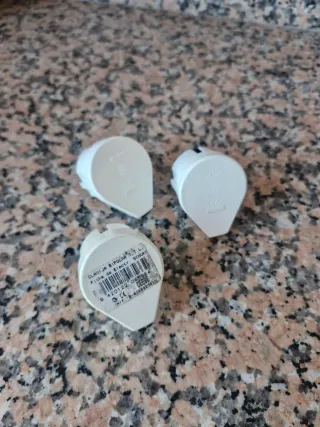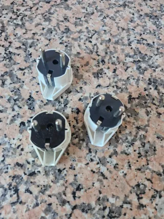Lote de tres clavijas bipolares tipo Schuko. Color blanco.