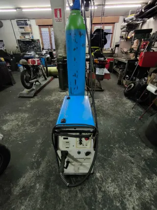 Equipo de soldadura Mig con capacidad de 200Ah / Max. 220Ah. Trifásico Maquina utilizada en un taller de reparación de maquinaria, no estuvo en taller de soldadura. Único dueño, no tendrá 20horas de uso. La vendo porque he cerrado el taller y ya no la uso. El gas no va incluido(el precio con la botella serían 150€ más) está casi llena. Se regala una bobina de hilo de aluminio de 1 mm y las sirgas para el aluminio. - Carro para transporte + manómetros todo incluido. Venta en persona, no se hacen envíos