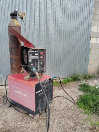 Soldadora trifásica Modulate 16 con una potencia de 300 Amperios. Incluye bombona de gas y cableado. - Modelo: Modulate 16 - Tipo: Soldadora trifásica - Potencia: 300 Amperios - Incluye bombona de gas - Incluye cableado