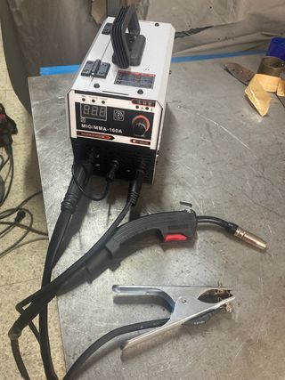 Soldadora HZXVOGEN MIG145 Mini MIG, ideal para trabajos sin gas. - Modelo: MIG145 - Marca: HZXVOGEN - Tipo: Gasless Mini MIG - Incluye rollo de alambre y pinza de masa. - A estrenar, lo he usado una vez para pegar una pata de mi mesa y ya no lo necesito.