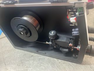 Soldador Migmate 150 en color rojo. contiene botella de gas para soldadura limpia tambien bobina de hilo casi entera y otra de hilo tubular para soldar sin gas, muy poco uso, lo tengo cogiendo polvo en un taller sin usar. - Asa superior para transporte. - Conexiones para cables. - Ranuras de ventilación laterales. bobina de hilo sasi entera bobina de hilo tubular para soldar sin gas botella de gas sin abrir careta, piqueta, etc.. careta, piqueta etc...