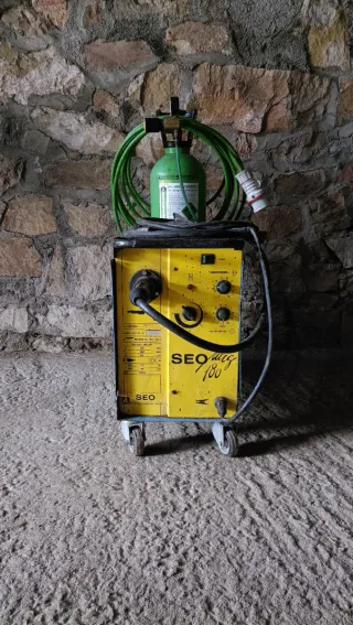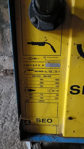 Soldadora MIG SEO 180 en funcionamiento. Funciona a 380. Bombona de gas no incluida.