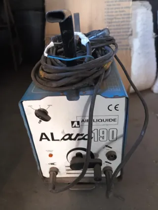 Soldadora Air Liquide ALarc 190 en buen estado. Es bobina de cobre y quema electrodo hasta 5mm.La pinza de masa está deteriorada. - Modelo: ALarc 190 - Marca: Air Liquide - Voltaje: 230V/400V