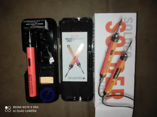 Soldador electrónico inalámbrico portátil con regulación de temperatura. Lo vendo porque pedí dos por error. - Incluye soldador, soporte, esponja y carrete de estaño. - Batería de 3.7V. - Diseño compacto y fácil de usar.