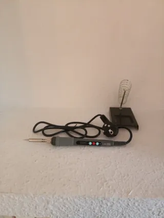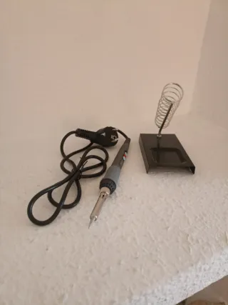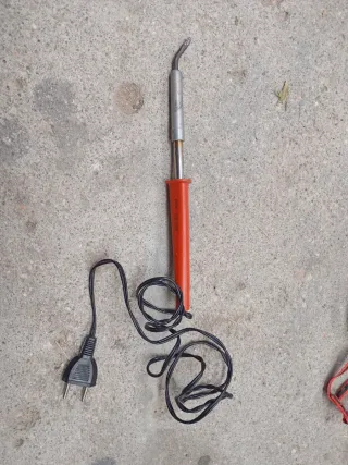Soldador de estaño eléctrico con cable y enchufe. Es bastante grande que resto - Mango ergonómico. - Punta de soldar. - Cable de alimentación.