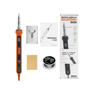 VER IMAGENES PARA MAS DETALLES. Kit básico para electrónica que incluye un soldador digital, un multímetro y accesorios. - Soldador con pantalla digital. 100 W, Rango de temperatura: 180°C-520°C (°C/°F) - Calienta en 30 segundos. - nterruptor ON/OFF: Inicio/parada con un clic. - Enchufe estándar europeo 220 V. - Cable flexible. CONTENIDO: - 1 soldador + 1 esponja de limpieza + 1 carrete de estaño de 50 g y 0,8 mm + 1 soporte para soldador. - Multímetro digital ANENG M113. Voltaje CA: 0,2 ~ 600 V Voltaje CC: 0,8 ~ 600 V Resistencia: 0~10MΩ - Destornillador de precisión con 7 puntas. Todo es nuevo con sus cajas.