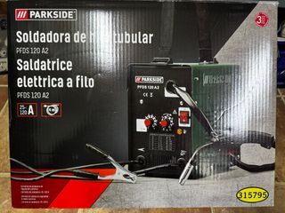 Soldador de hilo tubular Parkside modelo P MGS 120 B2, con tecnología Inverter. Se encuentra en su embalaje original, sin abrir. SIN ESTRENAR - Incluye máscara de soldar. - Pinza de masa y portaelectrodos. - Manual de instrucciones. NO NEGOCIABLE