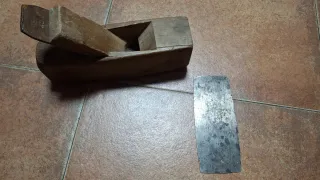 Cepillo de carpintero antiguo, fabricado en madera. Una pieza artesanal con un diseño clásico. - Cuerpo de madera. - Hoja de metal. Ya no quedan cepillos antiguos en estas condiciones Se hacen envíos