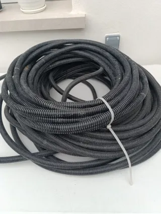3 Rollos de tubo corrugado negro de distintos grosores como se aprecia en las fotografías. Comúnmente conocido como macarrón para instalaciones eléctricas en obras. - Material: Plástico - Color: Negro - Tipo: Corrugado
