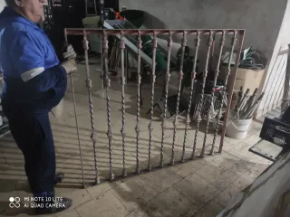 Verja de hierro forjado con diseño clásico, ideal para ventanas. Tiene diseño forjado en la parte de abajo. Medidas 1 m de ancho por 1,68 m alto - - - Barras verticales con torsión. - Diseño ornamental en la parte inferior. - Estructura robusta de hierro.
