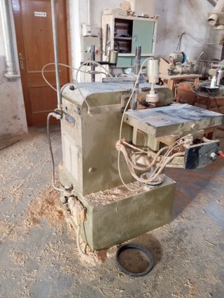 Escopleadora neumática y automática para trabajos de carpintería y mobiliario. Ideal para dar forma y realizar cortes precisos en madera. - Diseño robusto y funcional. - Sistema de operación neumático. - Funcionamiento automático para mayor eficiencia. Precio a convenir
