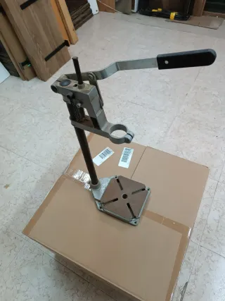 Soporte de columna para taladro manual. Permite fijar el taladro para un trabajo más preciso y seguro. - Base metálica robusta. - Columna vertical. - Palanca de descenso.