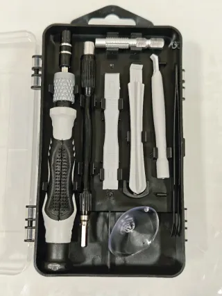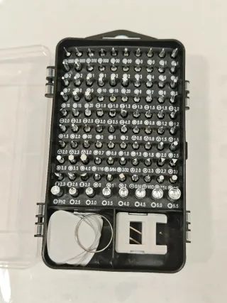 Vendo kit profesional de destornilladores de precision 115 en 1, completamente nuevo a estrenar. Ideal para reparacion de electronica y trabajos de precision. CONTENIDO DE LA CAJA: - Mas de 100 puntas de precision (Phillips, plano, Torx, Torx seguridad, Pentalobe, Allen, Tri-wing, Y, U, estrella, hexagonales, metricas y en pulgadas) Destornillador principal con mango ergonomico y antideslizante - Extensión para tornillos de dificil acceso - Adaptador magnético Pinzas de precisión Ventosa para apertura de pantallas Herramientas y puas de apertura de plástico Estuche rigido con cierre y organizacion interna