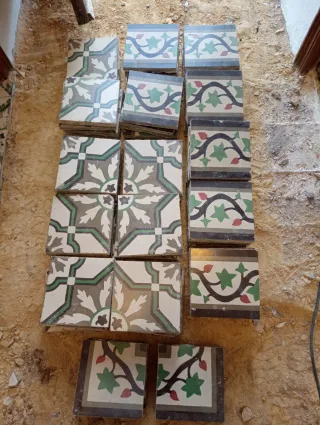 Lote de 120 baldosas antiguas para suelo. Ideales para proyectos de restauración o decoración con un toque vintage. - Diseño con estrella. - Material resistente.