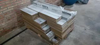 Lote de suelo laminado que ha sobrado de una obra. Ideal para completar o para proyectos pequeños. Hay varios diseños distintos (gris, madera clara y otros tonos similares). Tablas completas con sistema click. Ideal para reparaciones, pequeñas estancias, trasteros o bricolaje. No es un lote uniforme. Se vende todo junto. Recogida en mano.